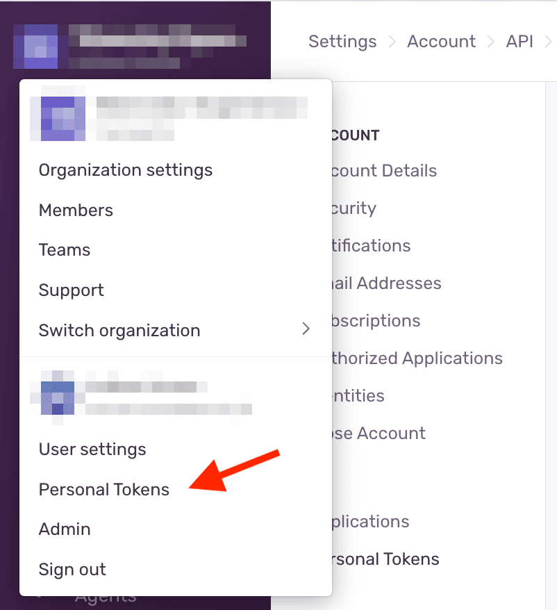 • Personal Tokens: These tokens are bound to a user, and have access to all organizations and projects that user has access to.
