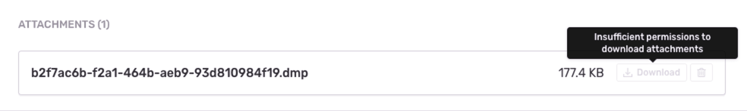 By default, access is granted to all members when storage is enabled. If a member does not have access to the project, the ability to download an attachment is not available; the button will be greyed out in Sentry. The member may only view that an attachment is stored.