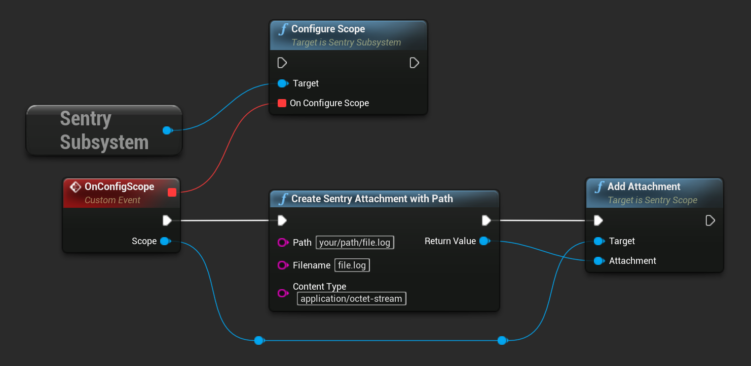 . The SDK will read the contents of the file each time it prepares an event or transaction, then adds the attachment to the same envelope. If the SDK can't read the file, the SDK logs an error message and drops the attachment.