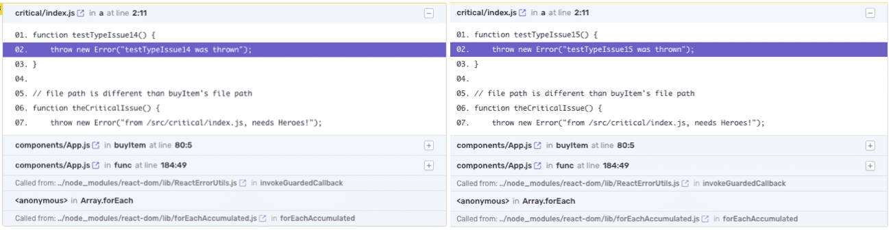 Even if a set of issues in the Issues Stream looks similar, if they are separate then there is something that still differs. In this example, it's the function name at the top of the stack trace: Issues Dashboard